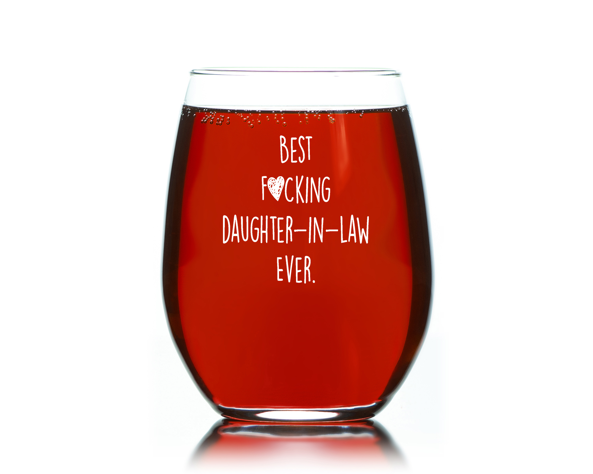 Wine Gift Daughter in Law gift, Best Fucking Daughter- in-law funny wine glass Stemless 15 oz