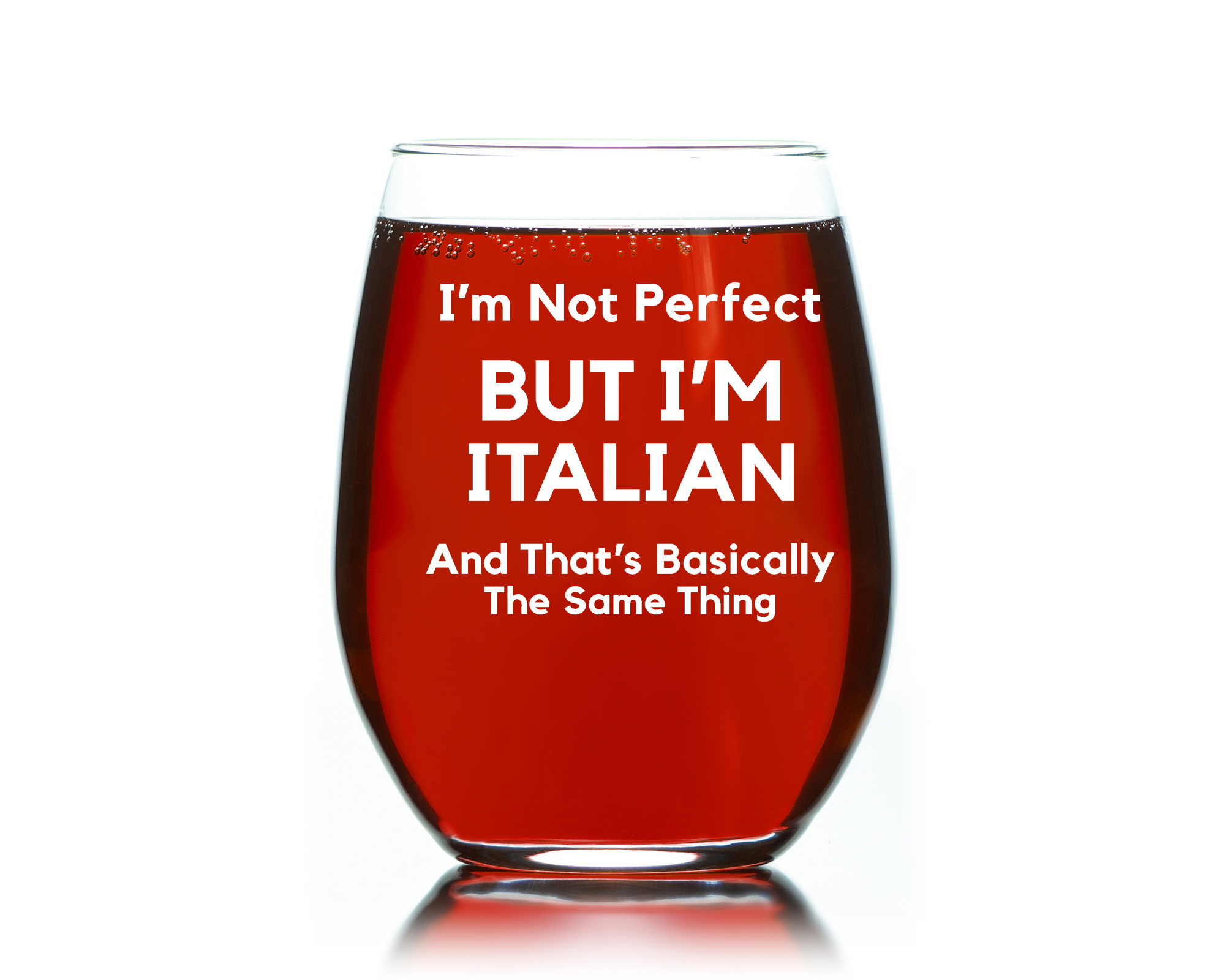 This I'm ITALIAN wine Glass is laser etched creating a beautiful frosted effect that is dishwasher safe and will hold up for years. This is a great gift for all of your Italian Friends show them some love and think of you every time they drink without you!