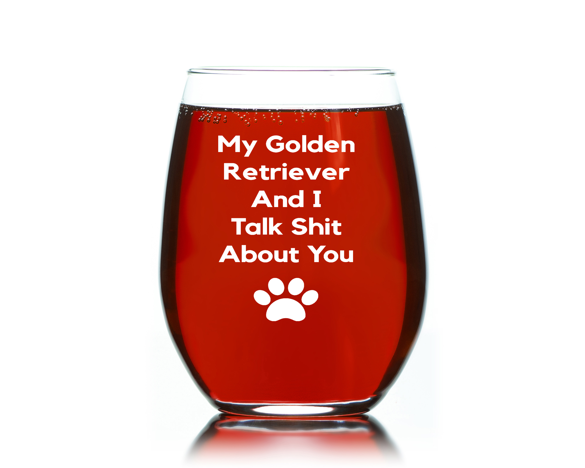 This Golden Retriever Mom/Dad wine Glass is laser etched creating a beautiful frosted effect that is dishwasher safe and will hold up for years.