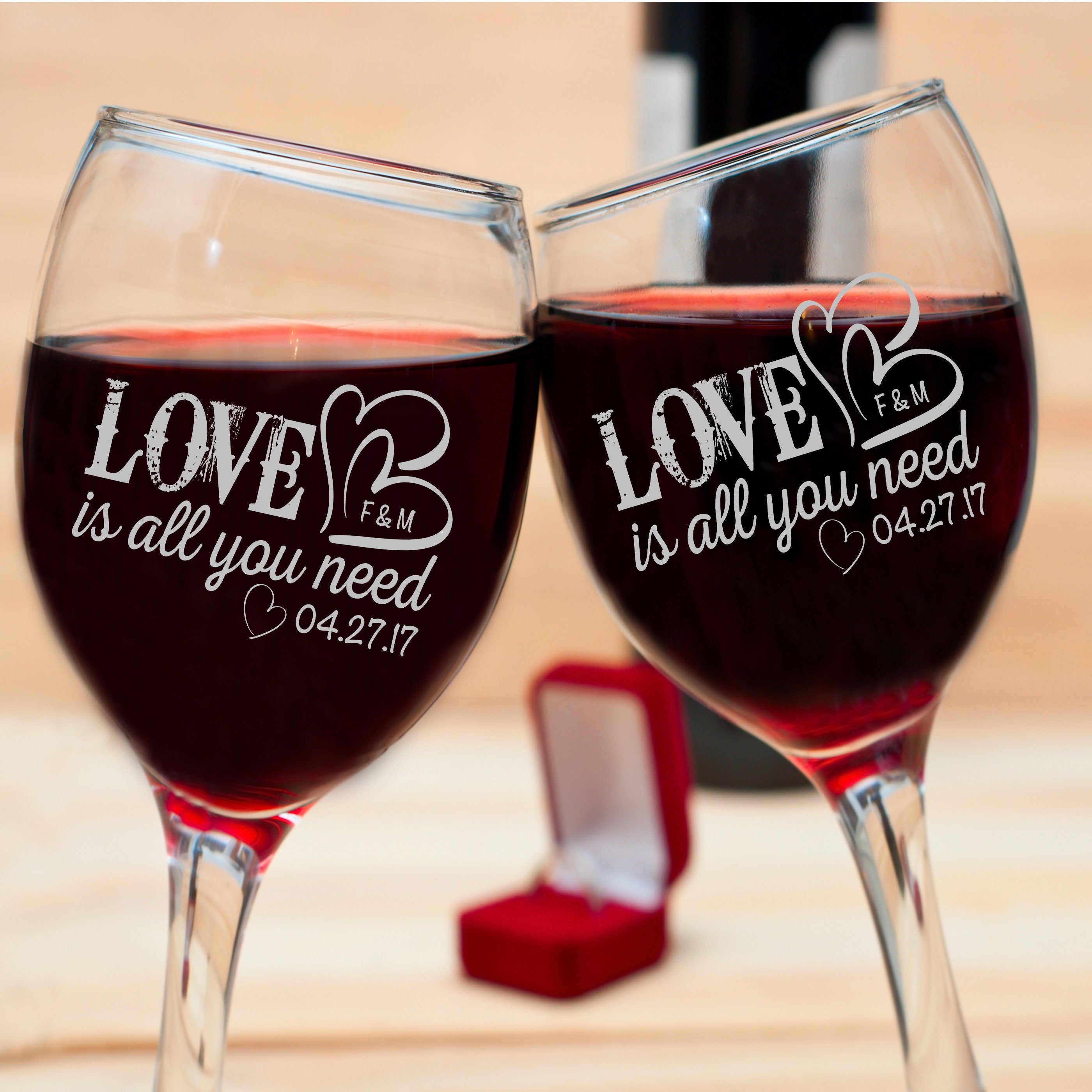Love Is All You Need Personalized Wine Glass Valentines gift Anniversary gift Wedding Gift Bridal Gift