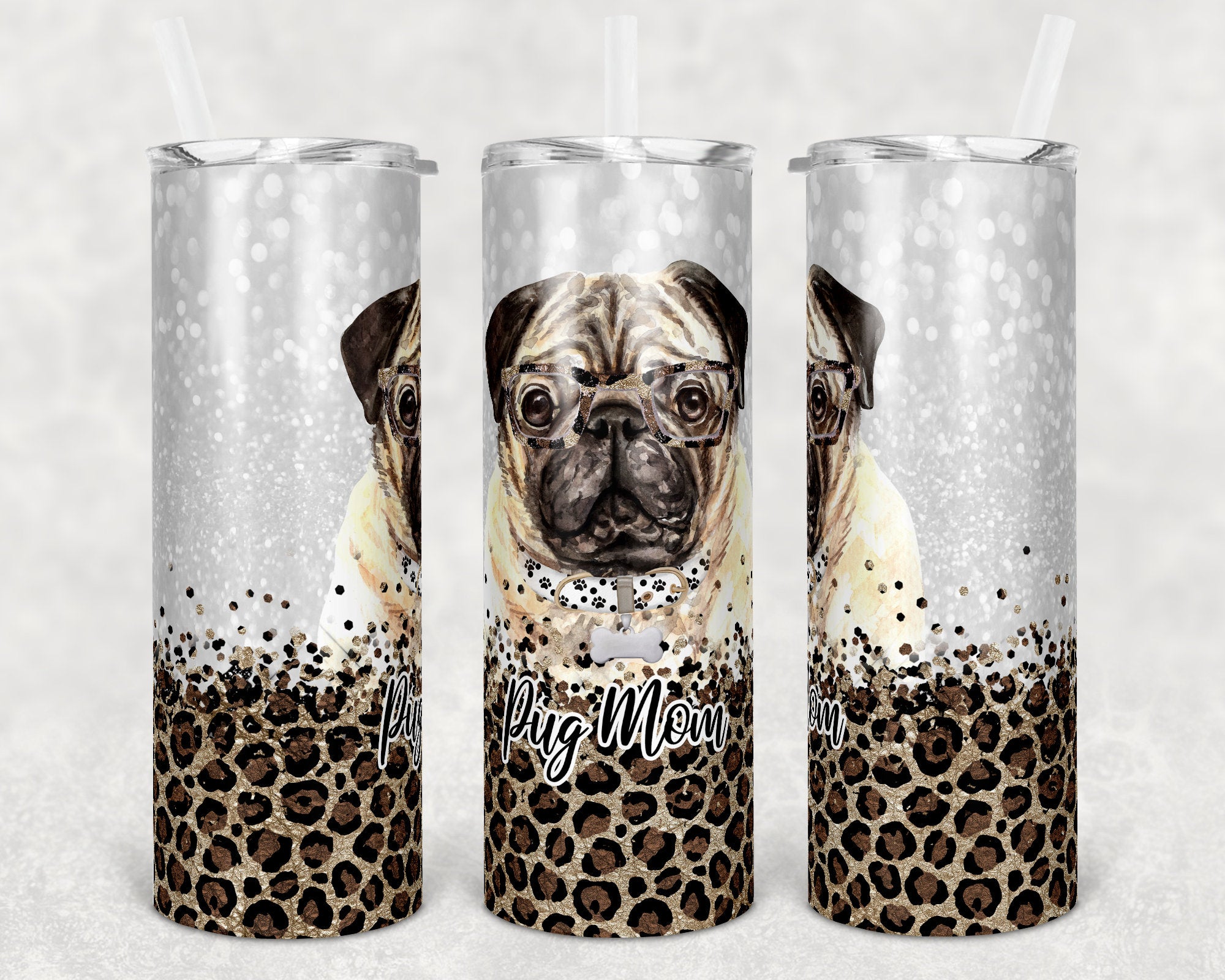 Personalized Pug and Leopard Lover Skinny Tumbler 20 oz, Pug mom, Lab mom, Labrador , German Shepard lover, French Bulldog mom gift,