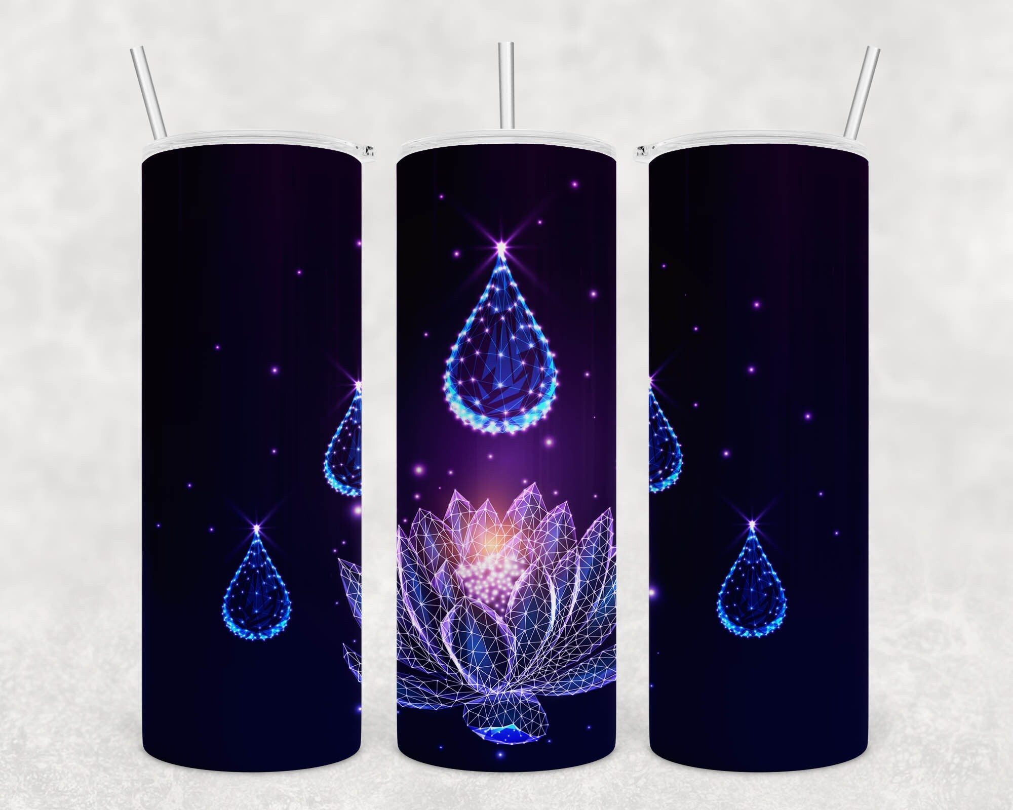 Skinny Tumbler 20 oz lotus with diamond drops, Zen, mystical, chakra gift for her, yoga lover gift, water bottle with straw