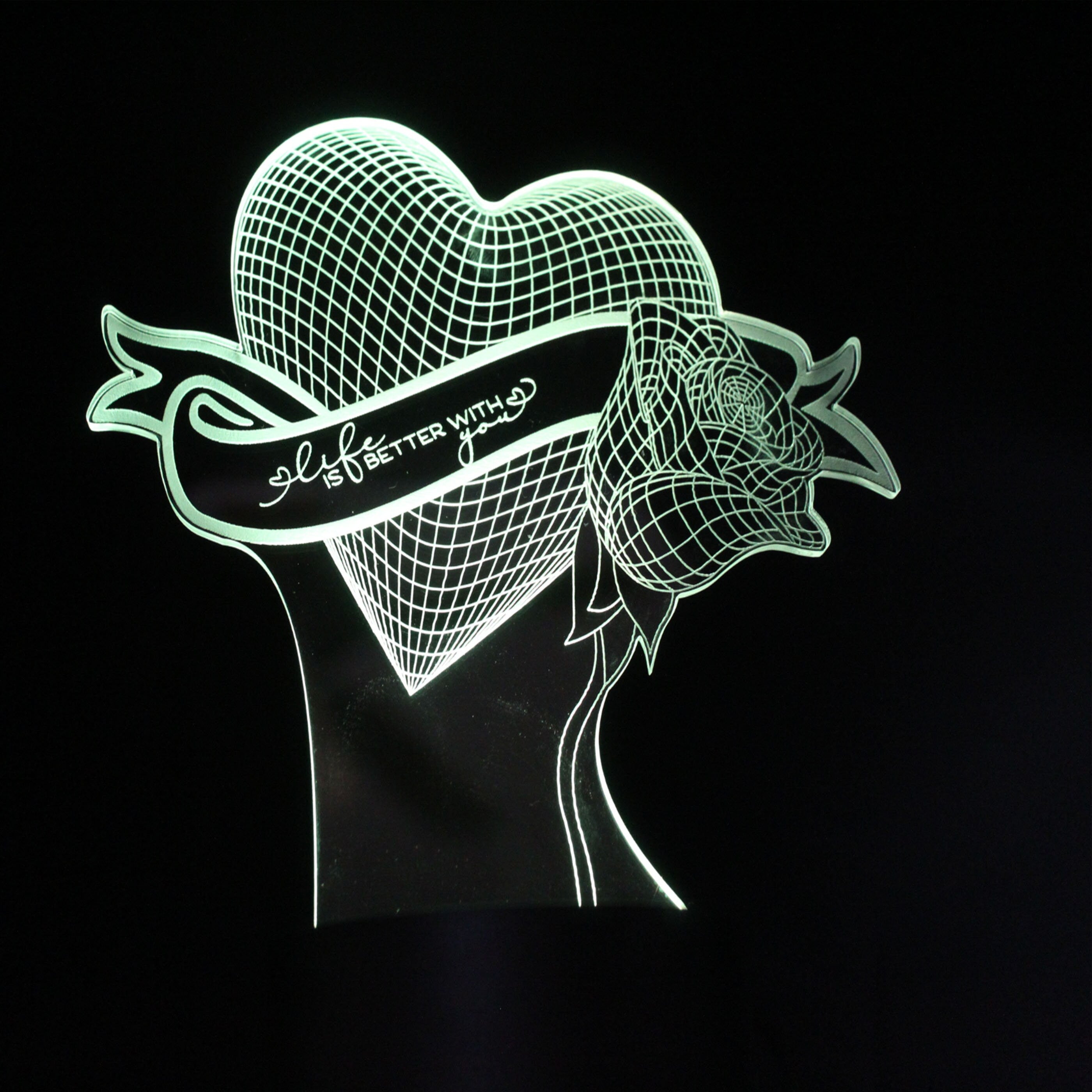 Valentine Heart and rose LED light Personalized, valentines gift, anniversary gift. engagement,valentine gift for him,boyfriend,gift for her